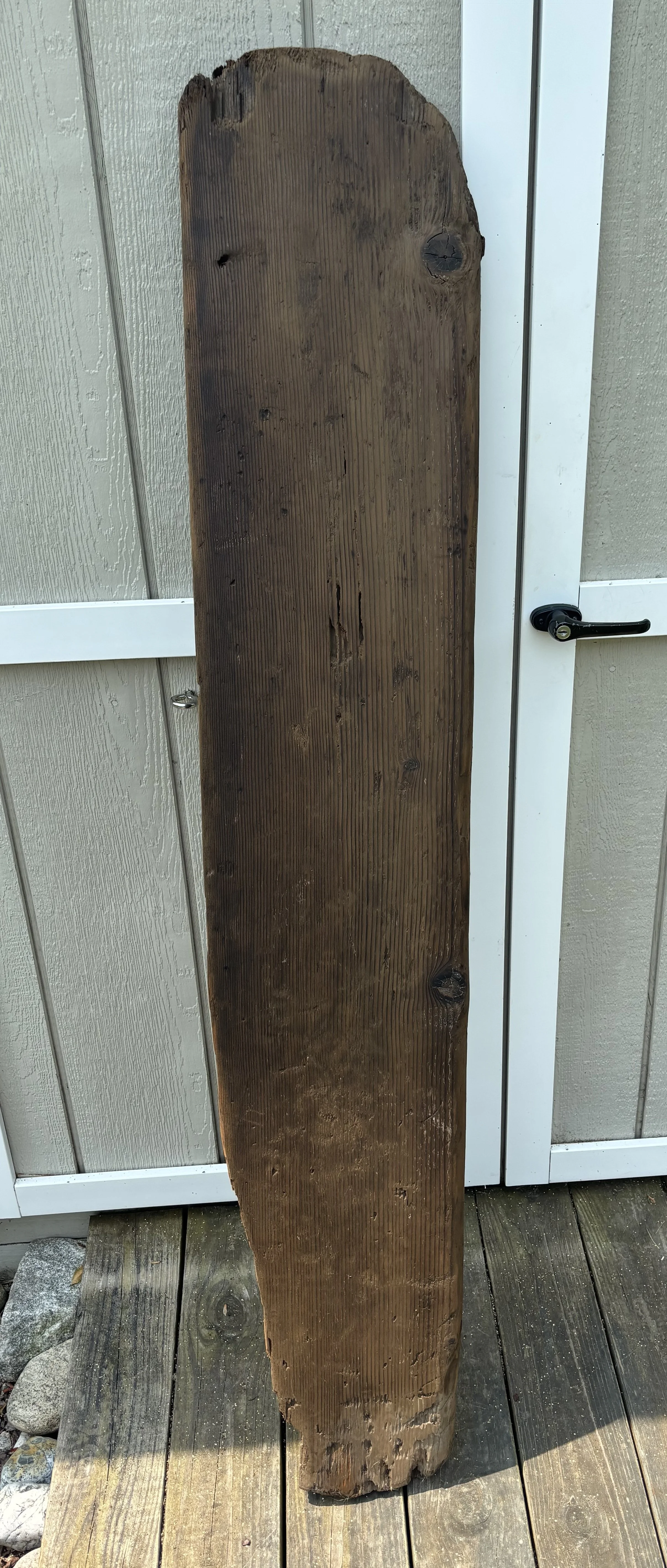 It was around 2018 when Rich found a hunk of wood washed-up on Charlestown Beach. He thought it was cool and dragged it home as I raised my eyebrows! That summer, he pulled it in and out of the shed to lay it in the sun so it could dry-out as I questioned his intention. Originally, he thought we could make some sort of sign with it, but it was eventually relegated to a corner of the shed and all but forgotten.